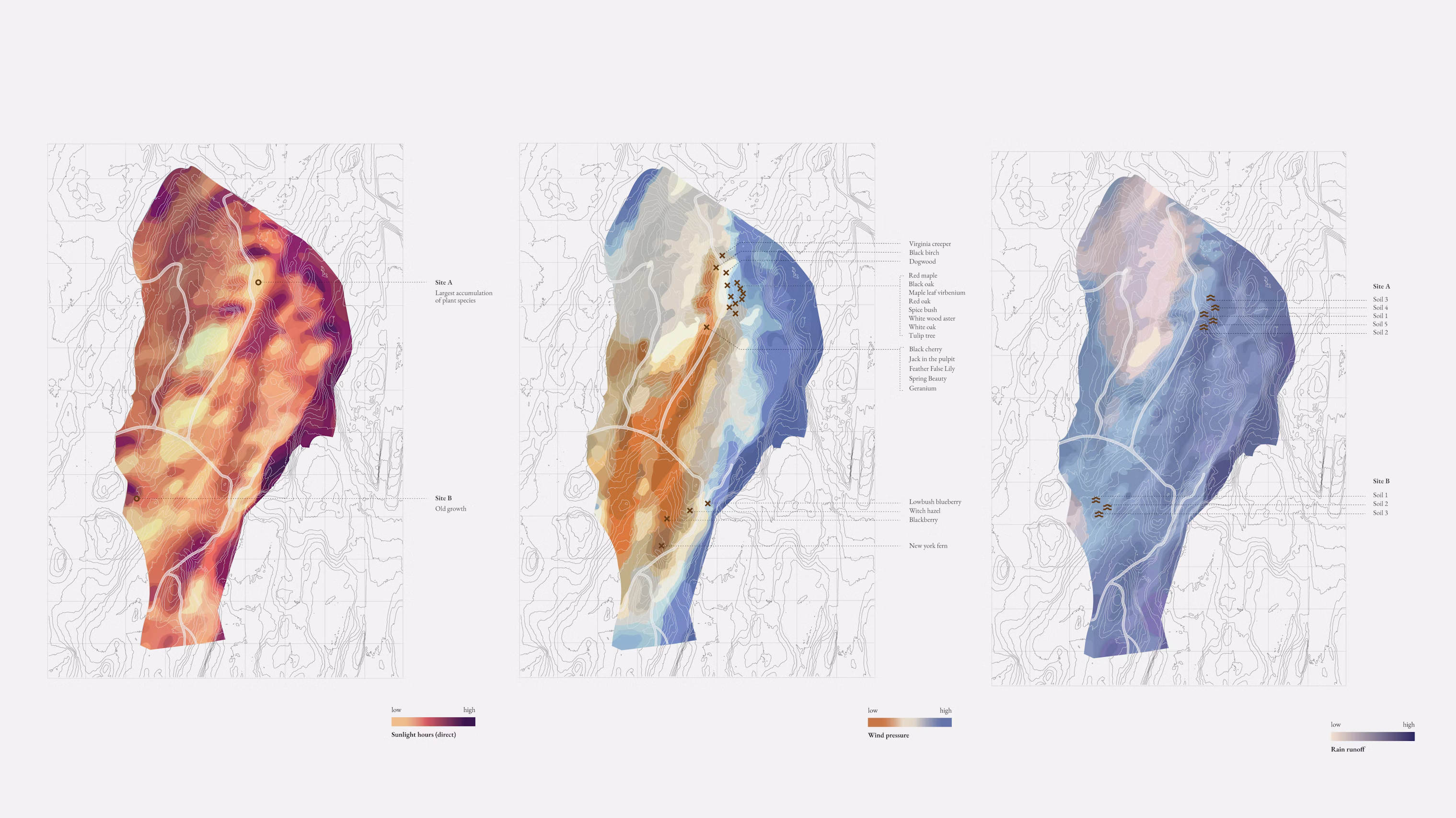 Soil conditions were designed to emulate the ancient soil composition and microbiome of Oak-Tulip Tree Forests across the city. With over 10,000 distinct soil series possible, categorized by their unique physical and chemical properties, we mapped the locations of these forests to the list of likely soil types at that time and constructed an average for the texture of our own designed soil. The sandy-loam result is layered with compost sourced directly from the New York Botanical Gardens and is topped with leaf litter from an old-growth Oak-Tulip Tree Forest in New York. If we are successful, a genuine Oak-Tulip Tree Forest microbiome will reinoculate our soil.