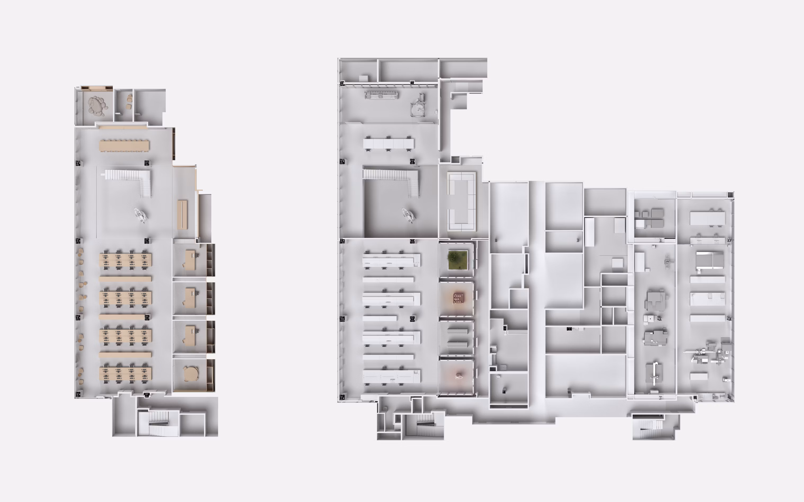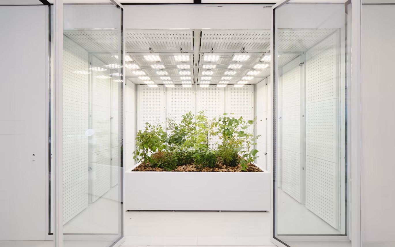 The lab features modular, removable benches and storage units are made with details such as stain-resistant seamless surfaces, hidden magnetic fasteners, and integrated plumbed services, that enable a functional and adaptable workbench. A circadian rhythm lighting system enhances the research environment, aligning biological work with natural cycles. The Wet Lab’s combination of cutting-edge equipment and flexible infrastructure fosters a forward-thinking space for experimental research at all scales.